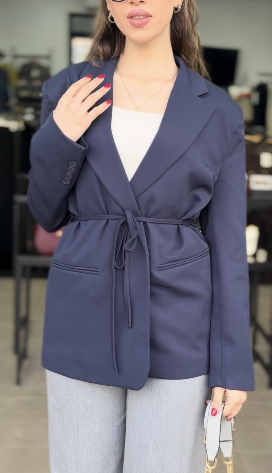 بليزر كحلي مع ربطة